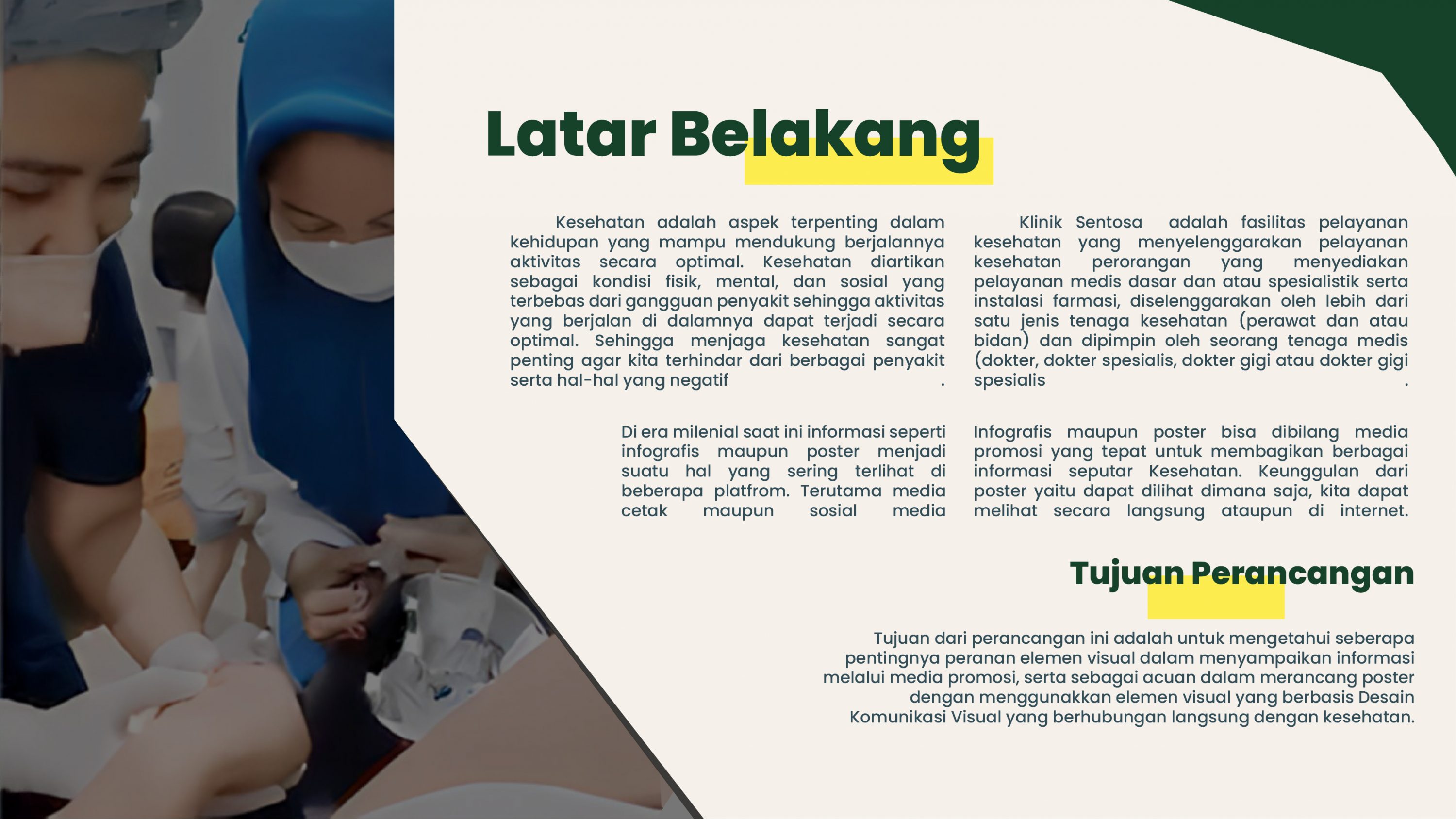 Judul pada Tugas Akhir ini adalah "Desain Media Cetak Poster Infografis Kesehatan Klinik Sentosa" Tugas akhir ini adalah tentang bagimana media cetak inforgrafis untuk klinik sentosa sebagai informasi mengenai kesehatan untuk pengujung klinik sentosa