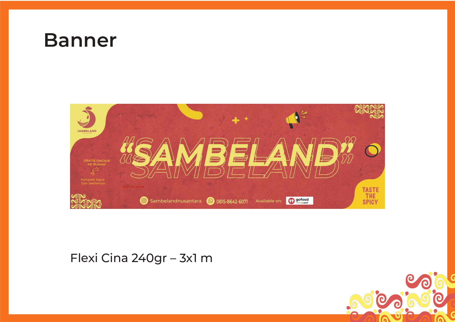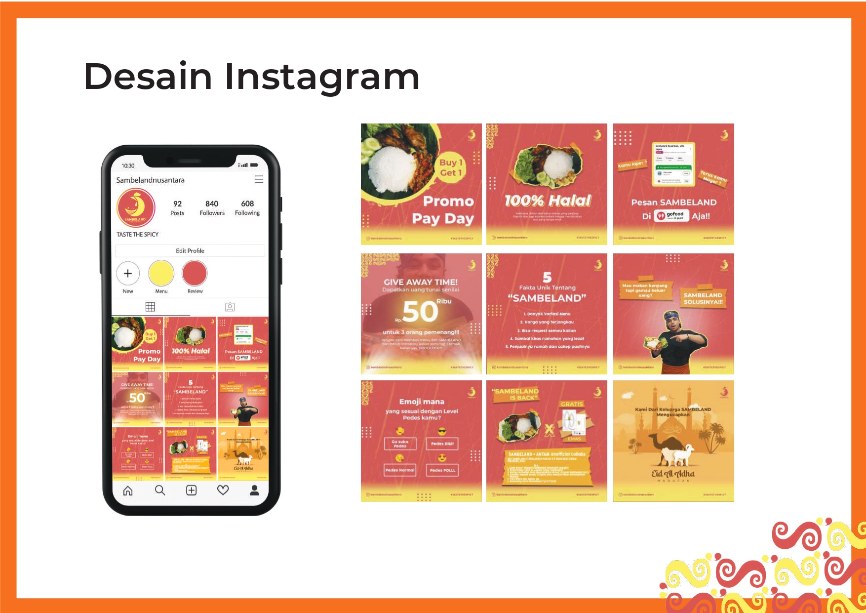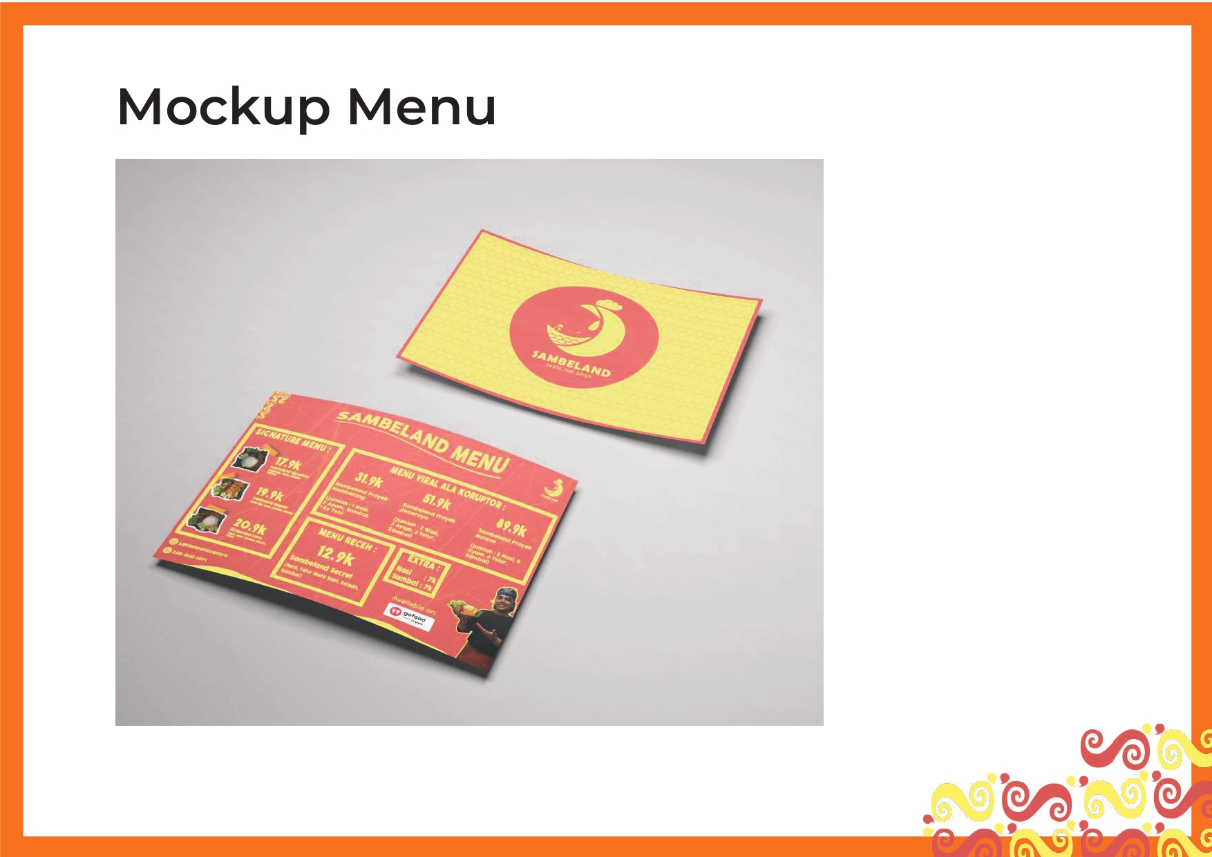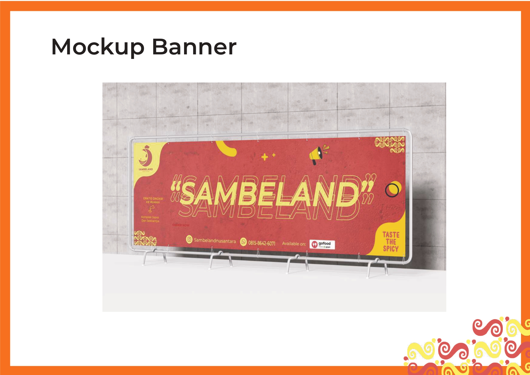 "Visual Identity": Mengacu pada elemen-elemen visual yang mewakili dan membedakan merek kuliner Ayam Sambeland. Ini termasuk logo, warna, tipografi, ilustrasi, dan elemen visual lainnya yang membentuk tampilan merek secara keseluruhan.