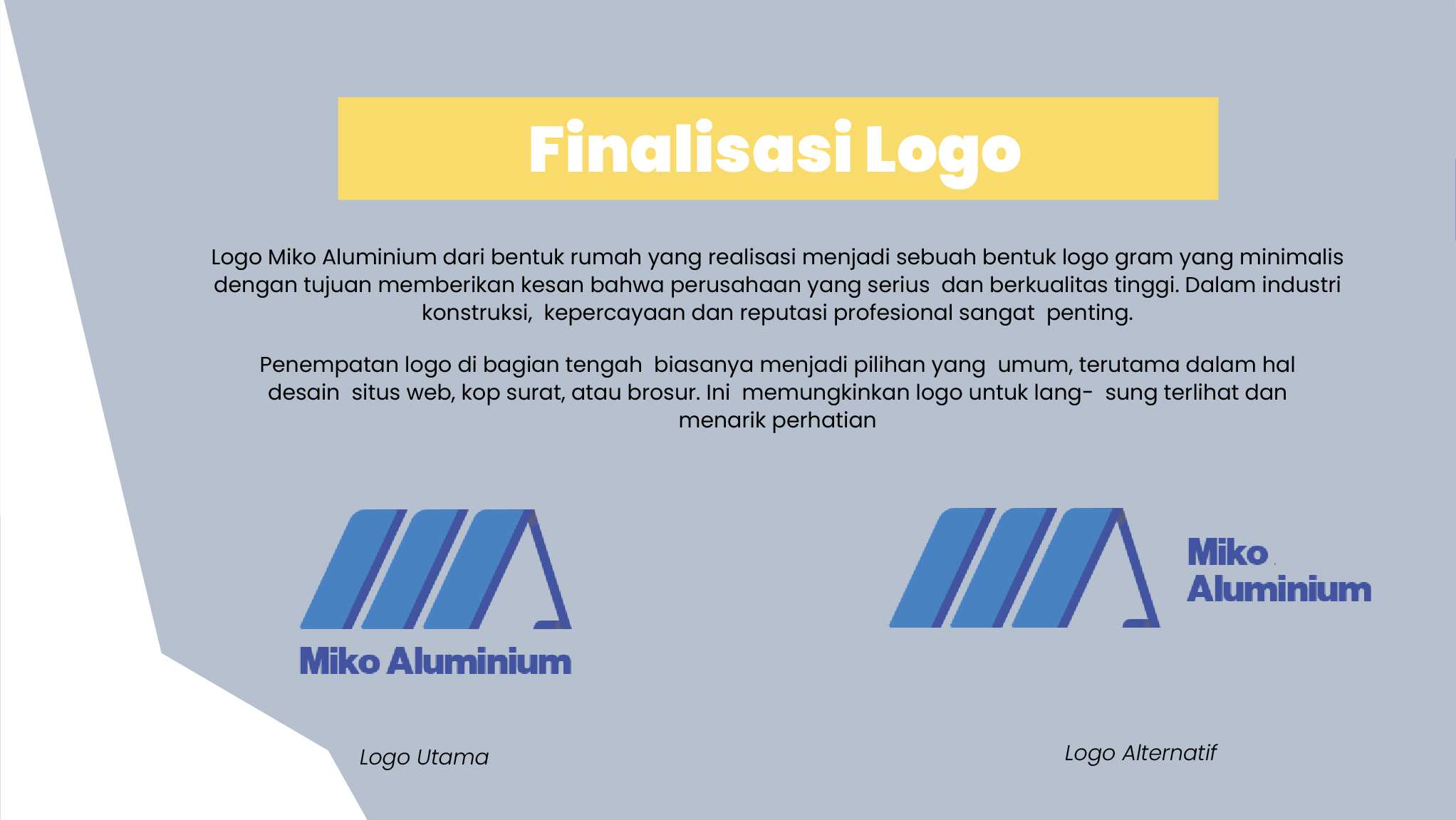 Logo Miko Aluminium sebelumnya tidak merepresentasikan dari usaha yang bergerak dalam bidang pembangunan, dan juga tidak memiliki makna serta filosofi didalamnya, dengan begitu perlunya pembuatan logo baru yang lebih relevan memiliki makna dan filofosi yang sesuai dengan kaidah desain supaya menimbulkan citra yang professional.