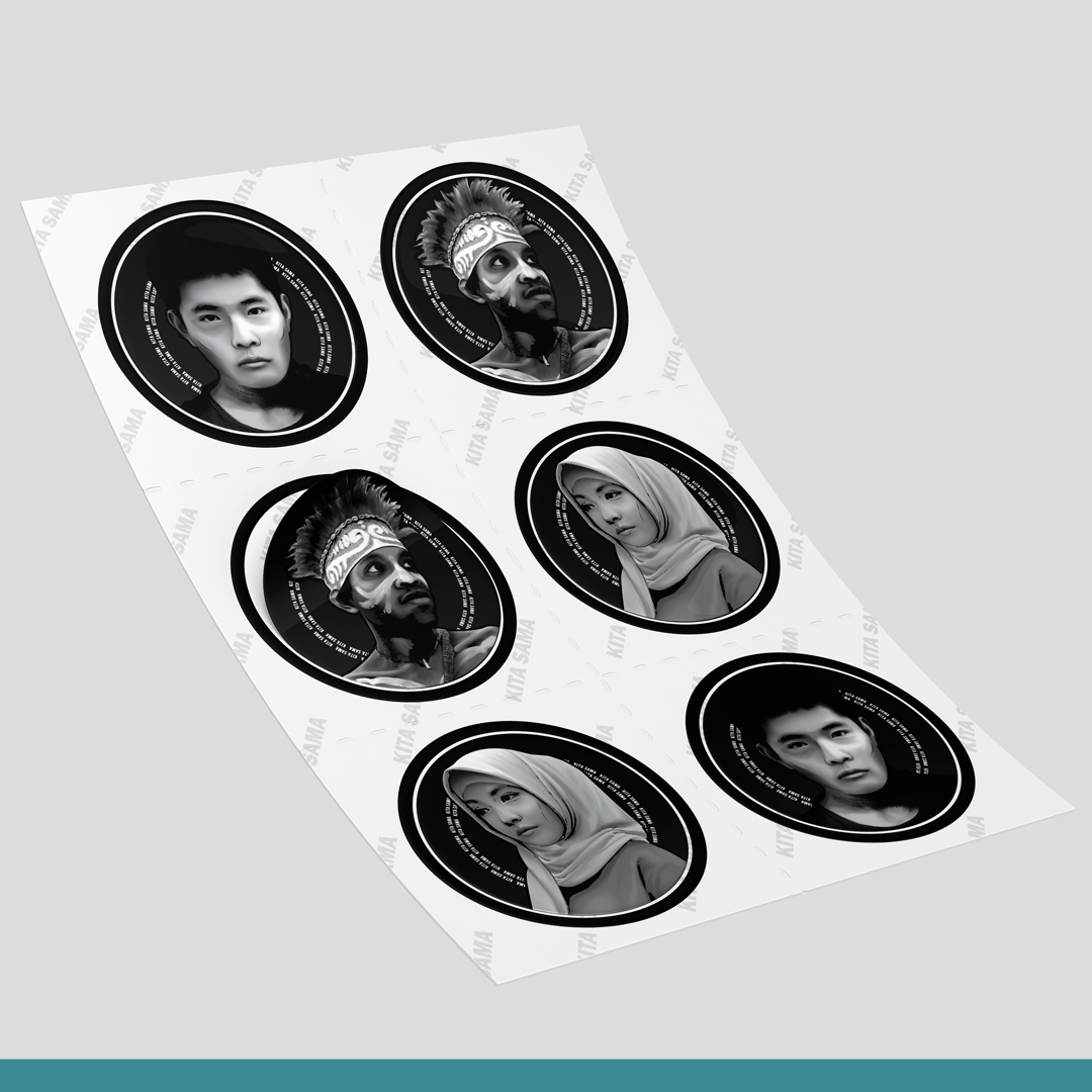 Berikut ini adalah media pendukung kampanye KITA SAMA yang meliputi beberapa item, yaitu Sticker, Baju, dan Pin.